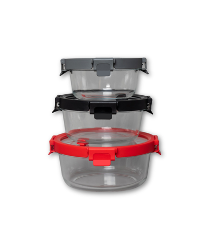 3 Pc Containers Round Glass Container With Lid And Vent Set, Microwavable, Food Container, Bisphenol In Multicolor