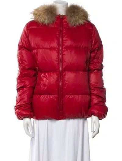 Gerard Darel Down Down Jacket Red With Hood Fur Trim & Stand Collar Zip Pockets & Zip Closure Fit: Jackets by Gerard Darel typically fit true to size. Unfortunately, due to restrictions, this item may not be eligible for shipping in all areas. | Gerard Darel Down Down Jacket in Red, Women's L