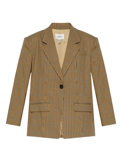 beige checked pattern single button fastening notched lapels padded shoulders flap pockets