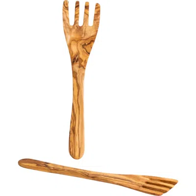 Olive Wood Serving Spatula Forks, Set Of 2 In Brown