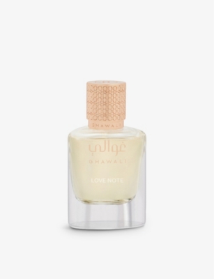 Ghawali Love Note parfumApplication: spritz on pulse points as desiredFragrance Family: woody, amberyTop notes: praline, chocolateHeart notes: amberBase notes: musk, vanilla bourbon, cashmerewood75mlMade in FranceFor hygiene reasons, we are unable to exchange or refund this product, unless faulty.