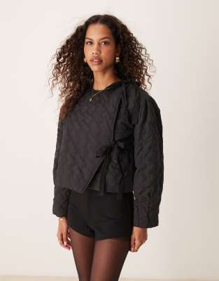 Coats & Jackets by Ghospell Wardrobe worthy Quilted finish Round neck Asymmetric tie fastenings Boxy fit