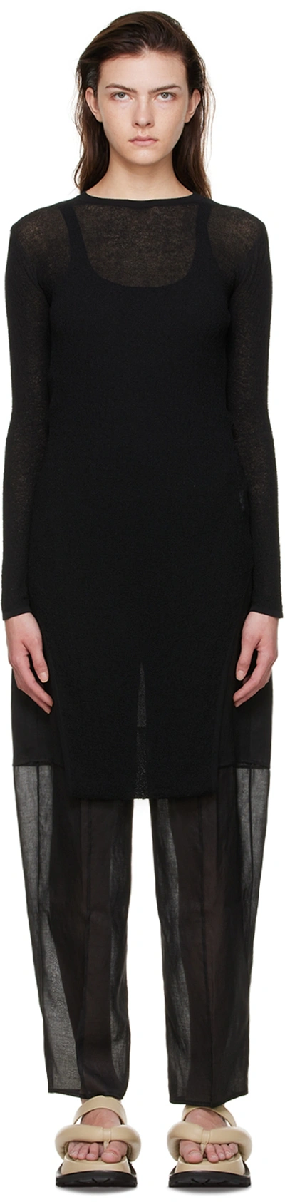 Semi-sheer crepe jersey sweater. · Crewneck · Straps at hem for alternate styling Supplier color: Black