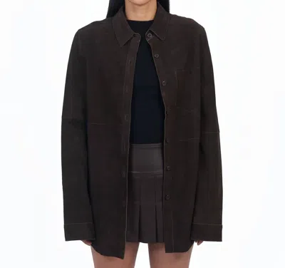 Britta Suede Button Front Blouse In Sable In Blue