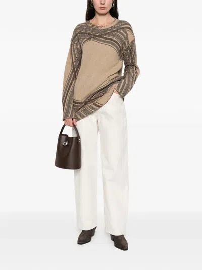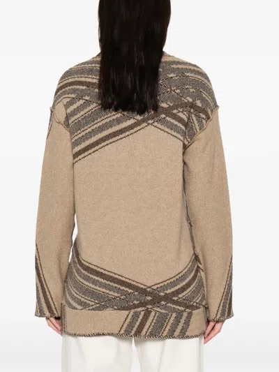 1990s beige striped crew neck long sleeves ribbed trims Condition: EXCELLENT. This previously owned item is in near-perfect condition with no signs of damage or use.