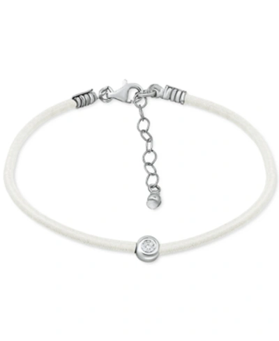 Cubic Zirconia Bezel Cord Ankle Bracelet In Sterling Silver, Created For Macys In White