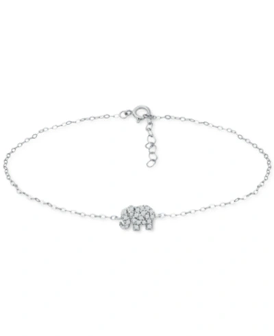 Cubic Zirconia Graduated Elephant Chain Link Ankle Bracelet In Sterling Silver, Created For Macy's