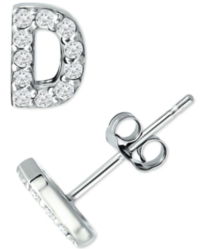 Cubic Zirconia Initial Stud Earrings, Created For Macy's In Sterling Silver D