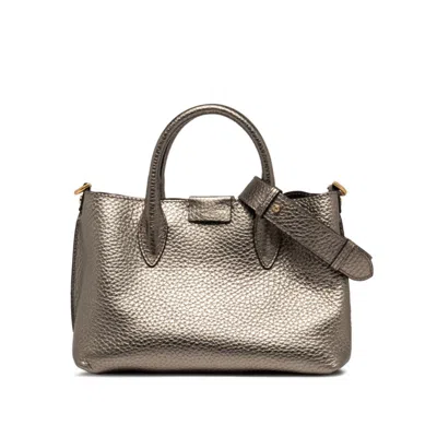 Aretha Bag In Double Pewter And T.moro Leather With Maxi Grain In Gold