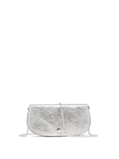 GIANNI CHIARINI Deva Clutch In Laminated Leather In Silver