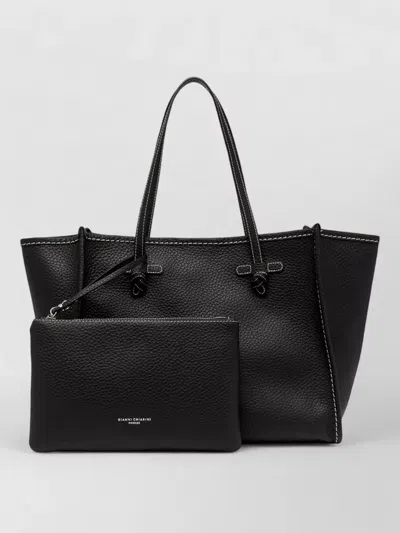 GIANNI CHIARINI Marcella Tote Bag Textured Contrast Stitching In Black