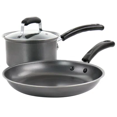 GIBSON EVERYDAY Highberry 3 Piece Nonstick Carbon Steel Cookware Set In Grey In Gray