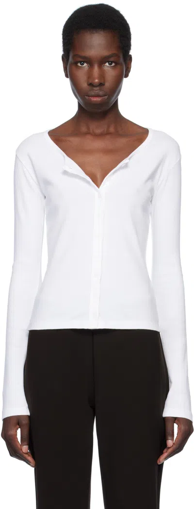 Cotton ribbed jersey cardigan. · Scoop neck · Button closure Supplier color: White