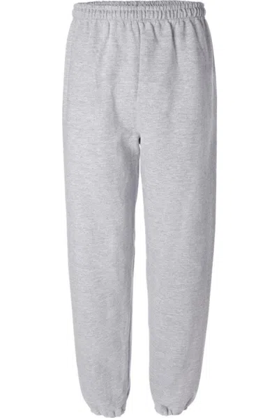 8 oz./yd (US) 13.3 oz./L yd (CA), 50/50 cotton/polyester, 20 singles. 2-end midweight fleece fabric. Classic fit. Spun yarn for softer feel and reduced pilling. Covered elastic waistband with drawcord. Elasticized cuffs. Tear away label.