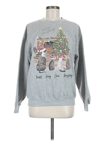 Gildan Pullover Sweater, Size: Medium. Item Details: Gray, Graphic Pattern, Crew Neck, Long Sleeve, Glitter, Women's Tops, Cotton/Polyester