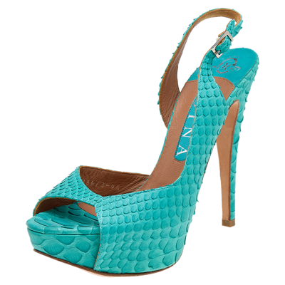 Pre-owned Blue Python Leather Platform Pumps Size 37.5