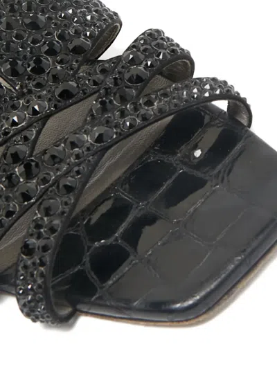 black crystal embellishment open toe flat sole Condition: GOOD. This previously owned and used item is in good condition with minimal signs of use. This may include fading of material or plating and scratches.
