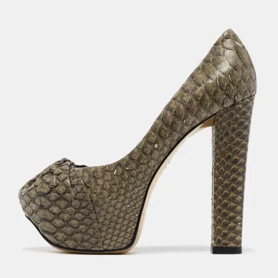 Pre-owned Green Python Platform Block Heel Pumps Size 39