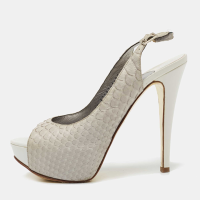 Pre-owned Grey Python Leather Peep-toe Platform Slingback Sandals Size 37.5