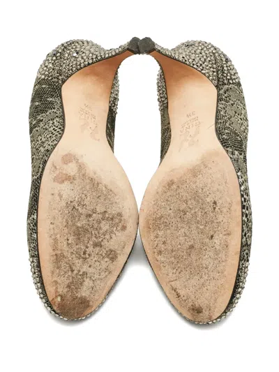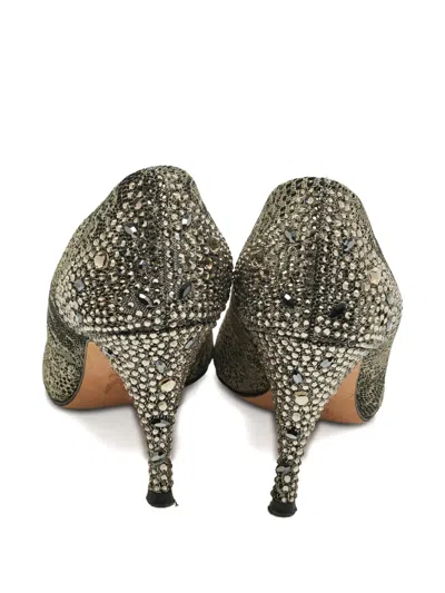 black lace upper crystal embellishments stiletto heel round toe Condition: GOOD. This previously owned and used item is in good condition with minimal signs of use. This may include fading of material or plating and scratches.