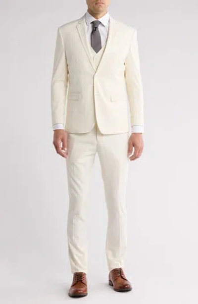 Skinny Fit Solid Stretch Three Piece Suit In Ivory