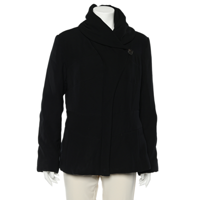 Pre-owned Black Quilted Oversized Collar Zip Front Jacket Xl