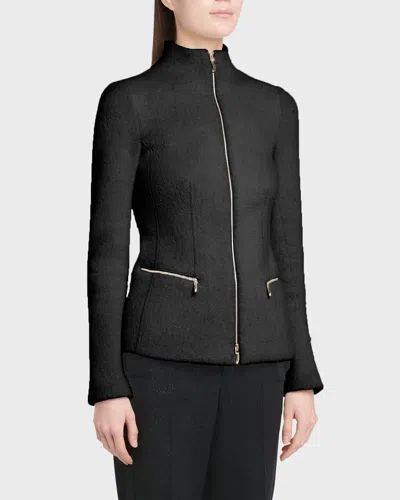 GIORGIO ARMANI Cashmere-blend Zip-front Knit Jacket In Black