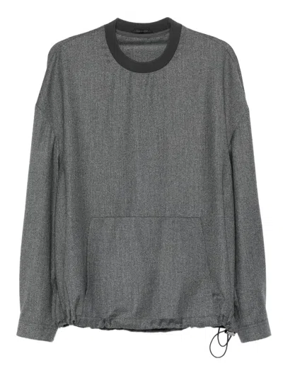 GIORGIO ARMANI Drawstring Pocket Wool Sweathsirt In Gray
