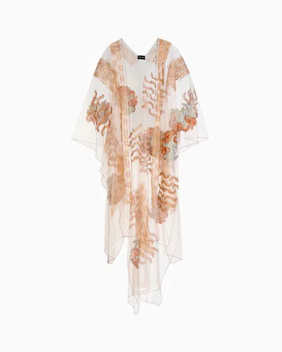 GIORGIO ARMANI Embroidered Tulle Cape In Orange