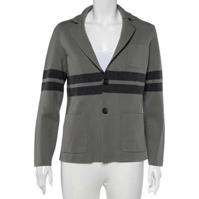 Pre-owned Grey Wool Stripe Detailed Button Front Cardigan Xl