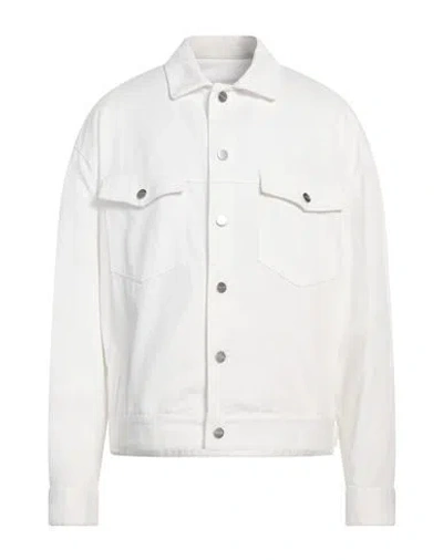 Man Denim Outerwear White Size 42 Cotton, Elastane