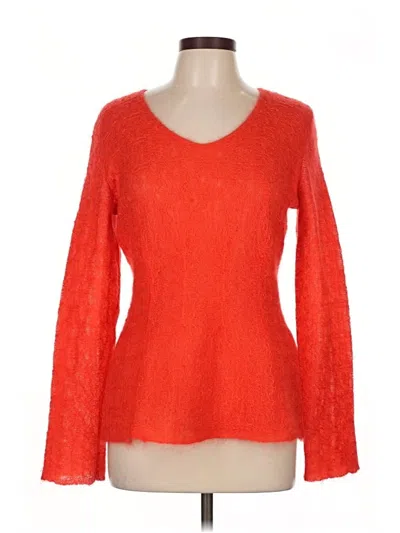 Giorgio Armani Pullover Sweater, Size: 46. Item Details: Orange, Scoop Neck, Long Sleeve, Peplum, Women's Tops
