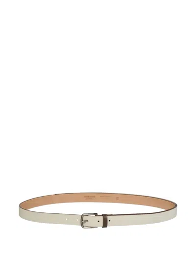 off-white and brown bovine leather and suede rectangular buckle adjustable fit