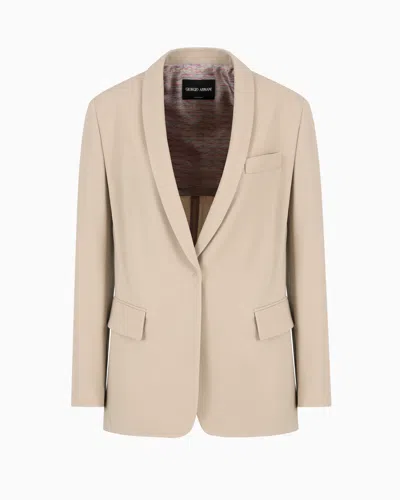GIORGIO ARMANI Single-breasted Jacket In Stretch Wool Barathea In Neutral