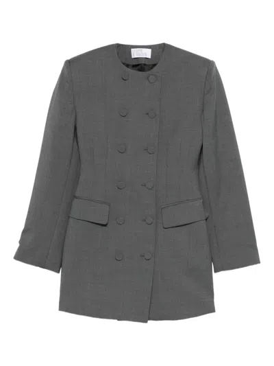grey double-breasted button fastening collarless two front flap pockets long sleeves