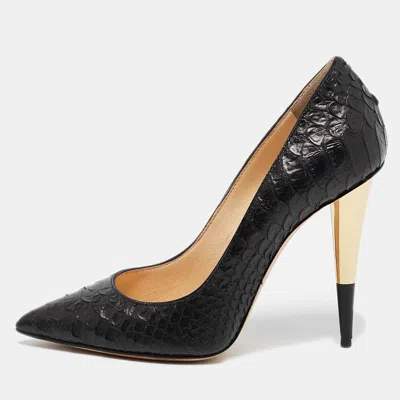Pre-owned Black Python Embossed Leather Pumps Size 35