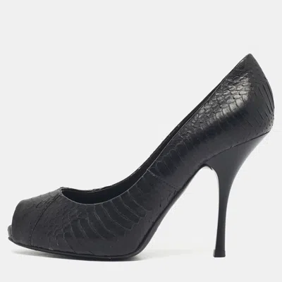 Pre-owned Black Python Leather Platform Peep Toe Pumps Size 36