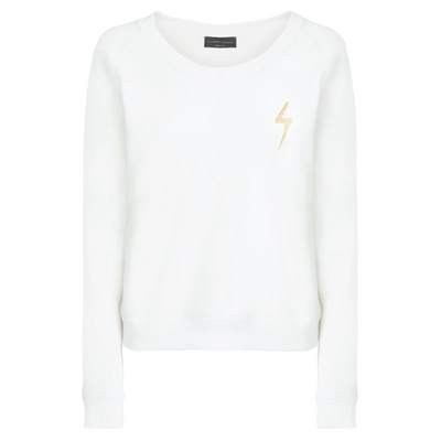 Hanane bolt-embroidered sweatshirt from Giuseppe Zanotti featuring cloud white, cotton, fleece texture, embroidered design, boat neck, long sleeves and straight hem.