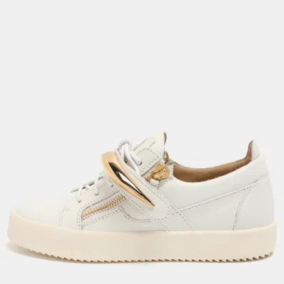 Designed for days spent on the move Giuseppe Zanotti's Shark Tooth sneakers bring a polished look to casual dressing. Smooth white leather is paired with a front zip and signature metal strap detail that sets them apart. The low top profile works well with denim tailored joggers or relaxed trousers.