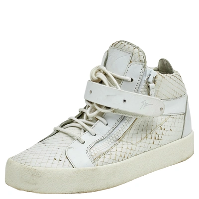 Pre-owned White Python Embossed Leather Coby High Top Sneakers Size 41