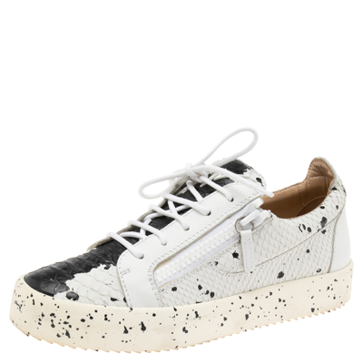 Pre-owned White/black Python Embossed Leather Double Sketch Sneakers Size 40