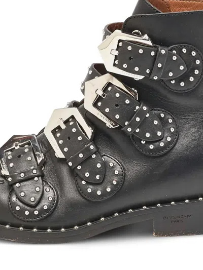 Leather||Fair|Step into elegance with these black leather ankle boots by Givenchy, expertly crafted in Italy. Designed for those who appreciate fine detail, they feature chic studded accents and sophisticated buckle closure. The luxurious all-leather composition ensures comfort and durability, while a touch of rubber in the sole offers reliable grip. Ideal for fashion-forward women, these boots effortlessly combine bold style with timeless craftsmanship, making them a standout addition to any footwear collection.