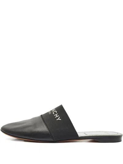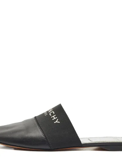 Leather|Bedford|Fair|Givenchy’s Bedford flat mules in black and silver leather offer an edgy twist on laid-back luxury. With their sleek silhouette, metallic accents, and logo-stamped band, they strike a cool, contemporary chord. Slip them on with tailored separates or elevate your casual looks with these directional flats.