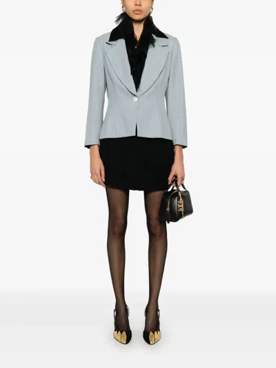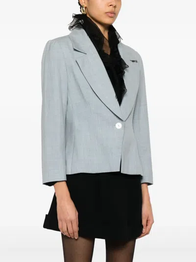 circa 1990s light blue wool check pattern notched lapels long sleeves two side slit pockets front button fastening English rear vents full lining Condition: GOOD. This previously owned and used item is in good condition with minimal signs of use. This may include fading of material or plating and scratches.