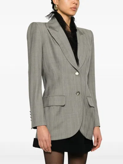 Pre-owned 1990s Check-pattern Blazer In Grey