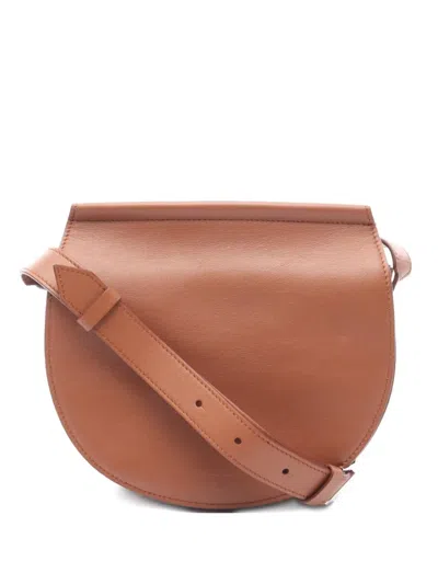2010s brown leather saddle shape adjustable and detachable shoulder strap partitioned compartment Condition: EXCELLENT. This previously owned item is in near-perfect condition with no signs of damage or use.
