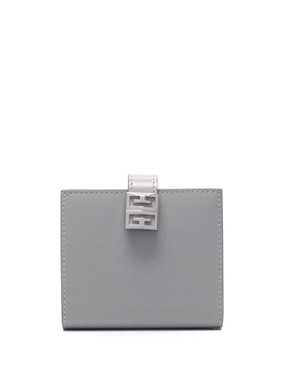 Cloud gret calf leather 4G small wallet from GIVENCHY featuring silver-tone logo plaque, signature 4G motif, contrast stitching and folding design.