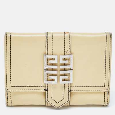 Pre-owned Beige Leather Flap Compact Wallet