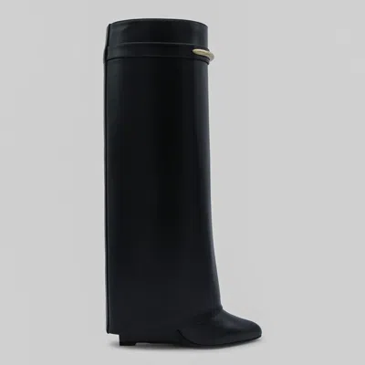 Black leather boots from Givenchy featuring round toe, knee length and gold tone hardware. Composition: 100% Le