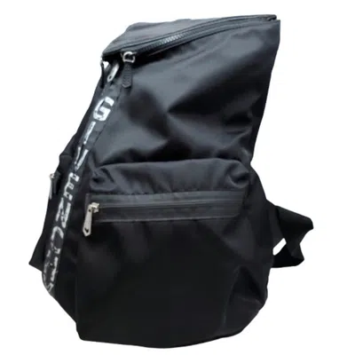 Pre-owned Black White Nylon Leather Backpack ()